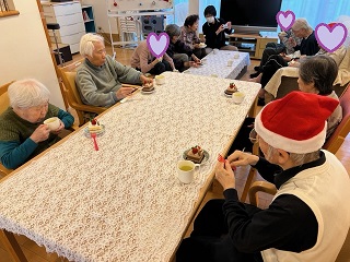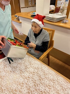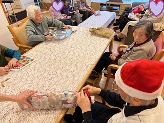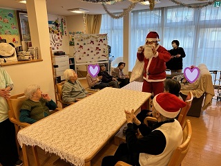 本日1階、2階合同で、クリスマス会が行われました。 ![]() ![]() 美味しそうなクリスマスケーキ(^O^) ![]() みなさん美味しくいただきました。 ![]() さて、いよいよサンタさんの登場です。 ![]() サンタさんから、みなさんそれぞれに合ったプレゼントをもらいました(^O^)/ ![]() 最後は、ビンゴゲームです。 ビンゴになった方から、お菓子をもらっていきます。 大盛況なクリスマス会でした(^O^) |