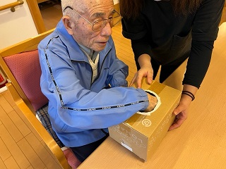 今年最後のおやつは、つかみ取りです。 箱の中に入っている、おやつをどれだけ取れるかな。 ![]() なにやら、いろんな物が入ってますね。 ![]() ![]() あまり掴みすぎても出てこないかも(^O^) それでもたくさん掴んで出してきます。 |